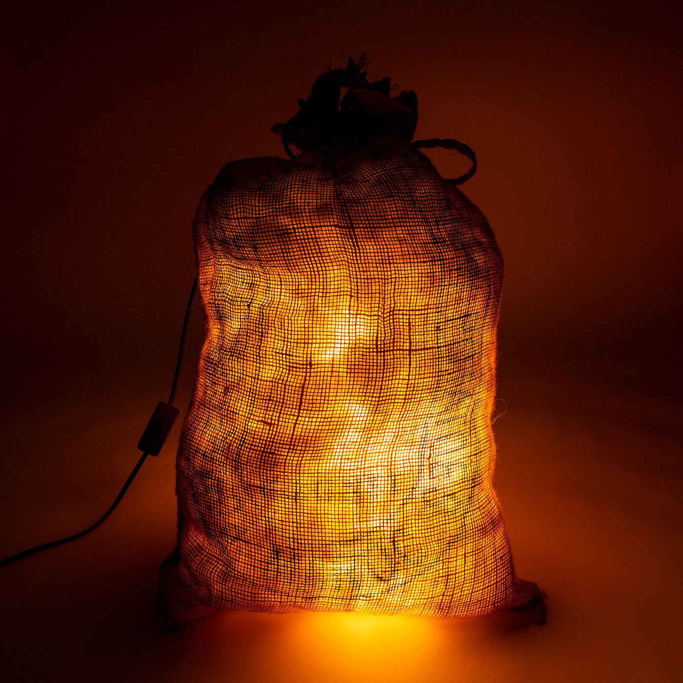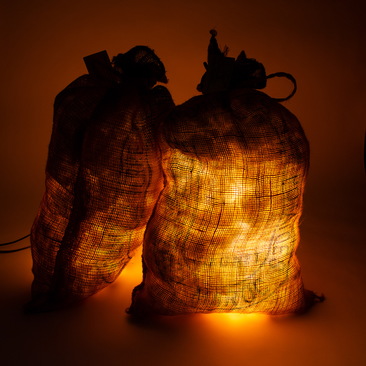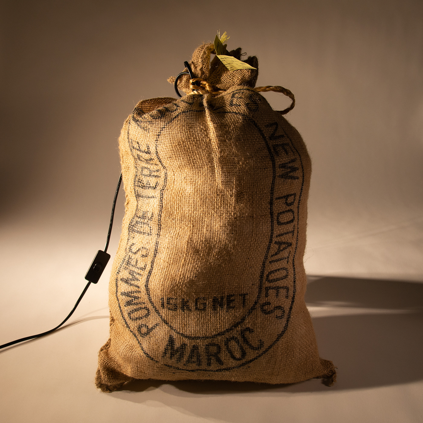 Canvas patato bag with pillow filler and LED light source.