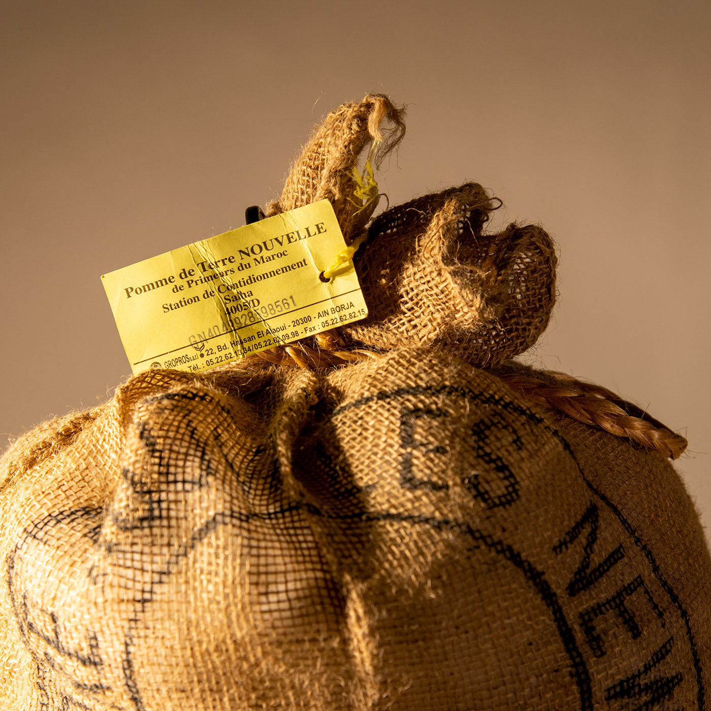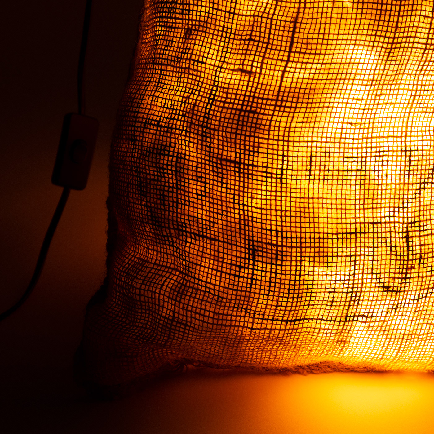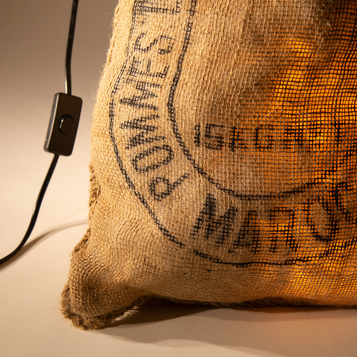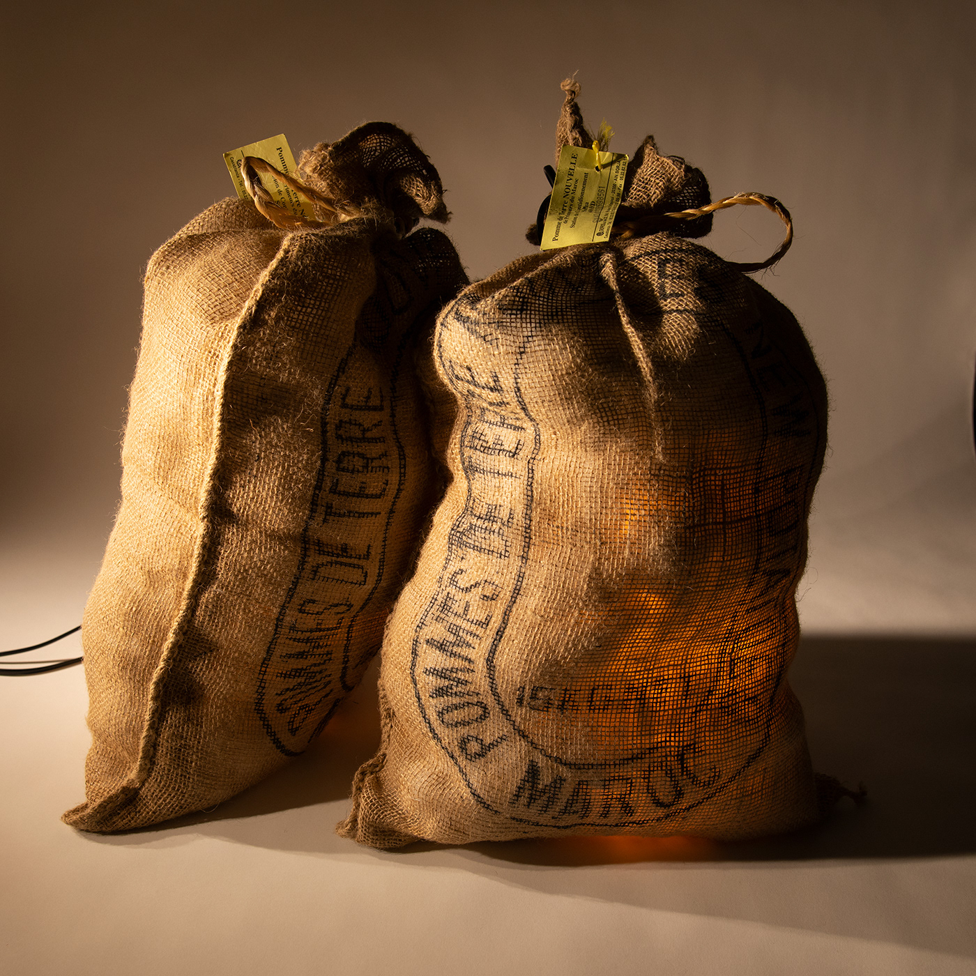 Canvas patato bag with pillow filler and LED light source.